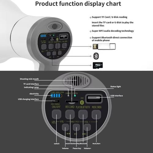 Power Output: 25W,Boasting a robust 25W power output, this megaphone delivers a powerful audio experience.